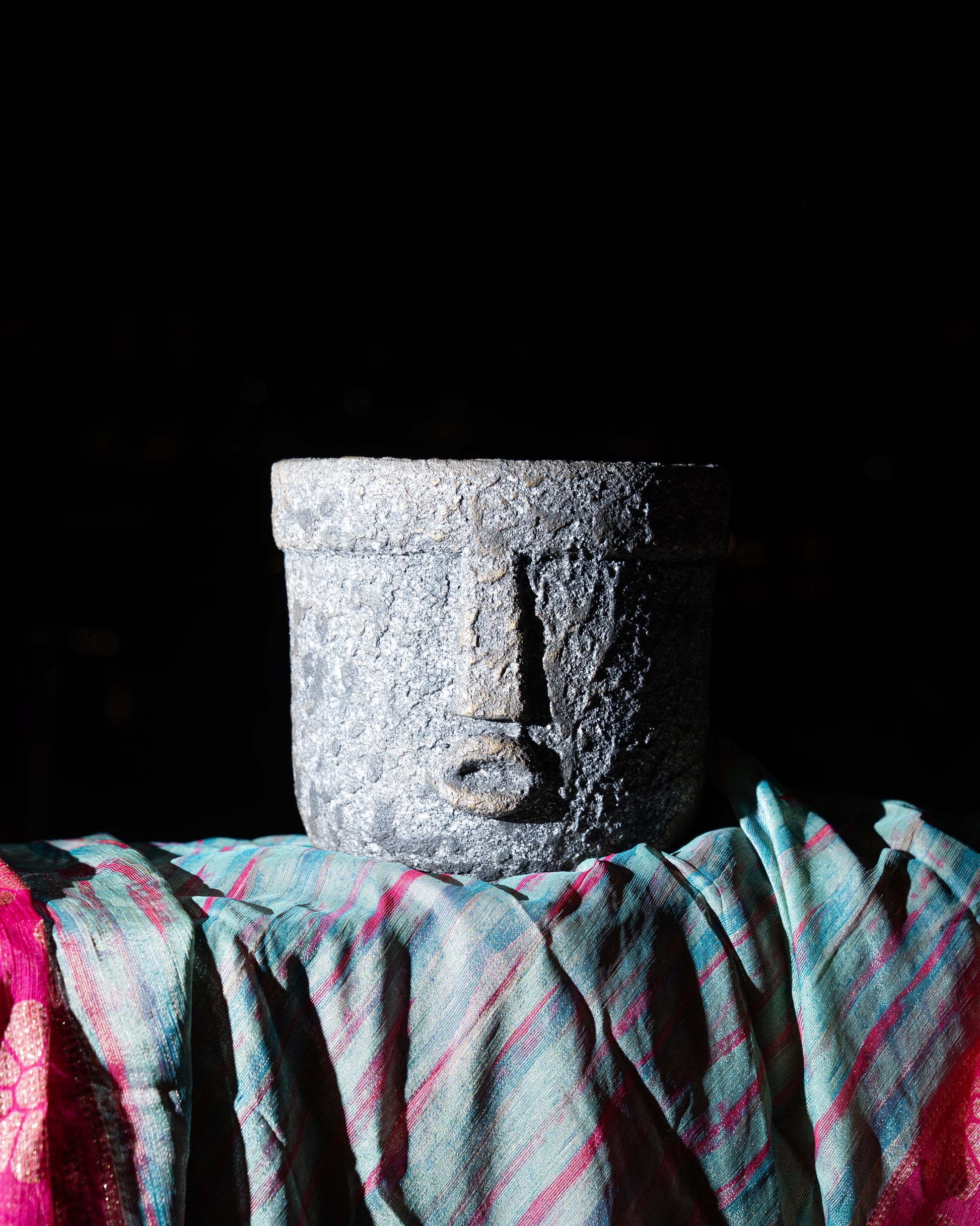 Handcrafted with a stone-effect finish, the Echo Pot brings sculptural design into everyday living. Its subtle carved face detail makes it a statement piece — blending raw texture with modern minimalism.